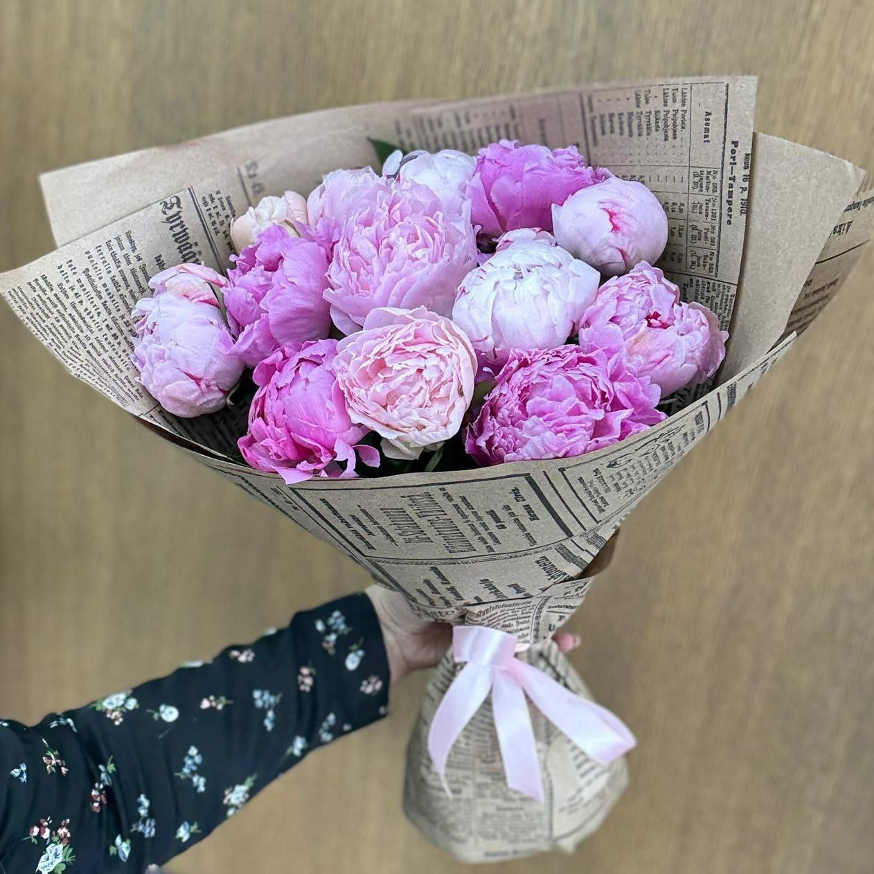 13 бело-розовых пионов