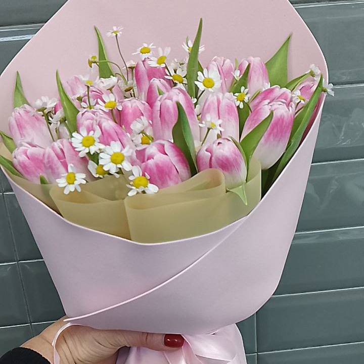 25 тюльпанов и танацетум большой