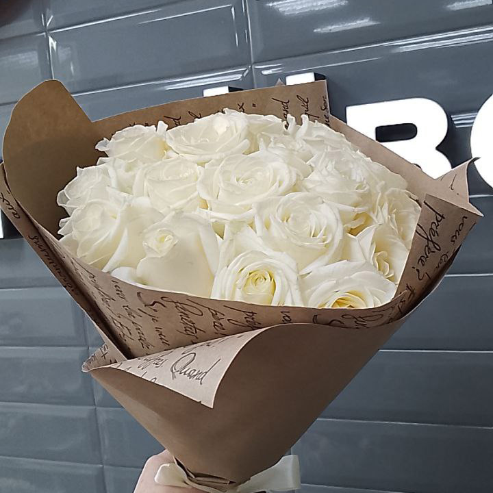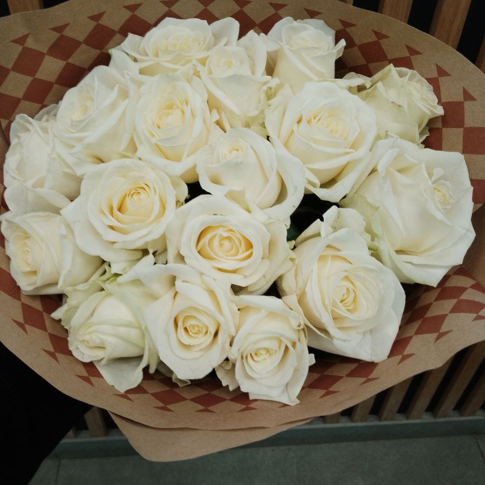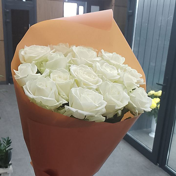 17 бело-зеленых роз (50 см)