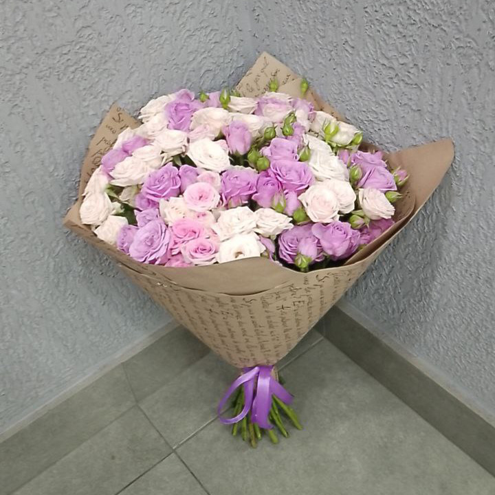 27 бело-розовых кустовых роз