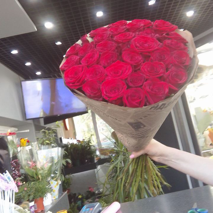 33 красных роз (60 см)