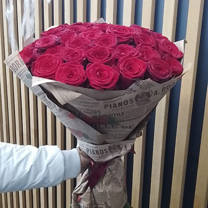 35 бордовых роз (70 см)