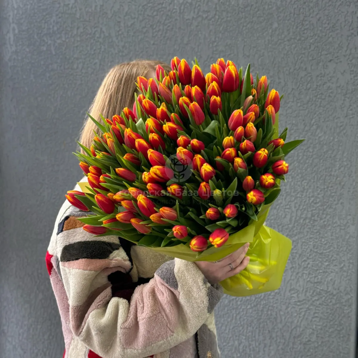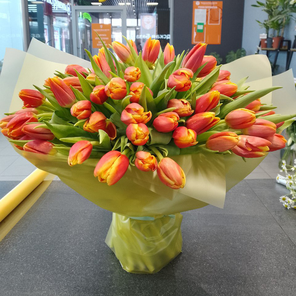 75 красно-жёлтых тюльпанов
