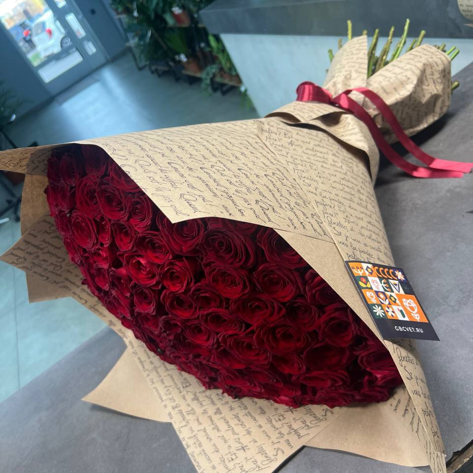 95 красных роз (50 см)