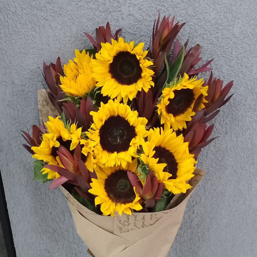 Большой букет подсолнухов и сафари
