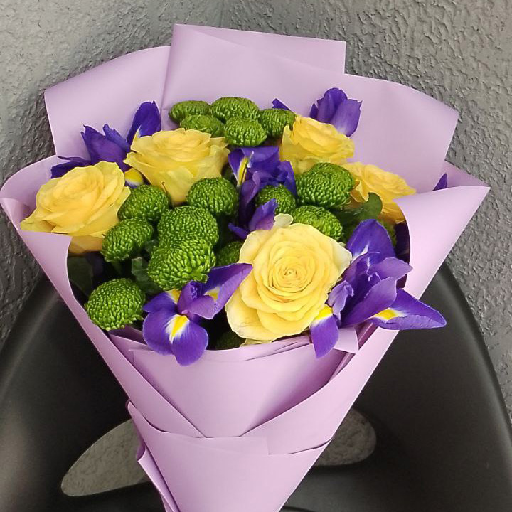 Букет из желтых роз и ирисов (55 см)