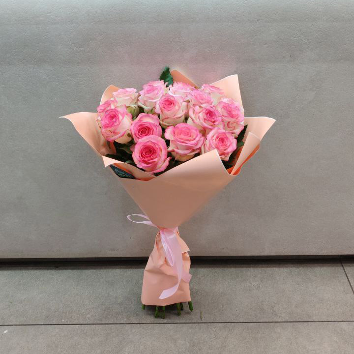 Букет из 17 розово-белых роз (60 см)