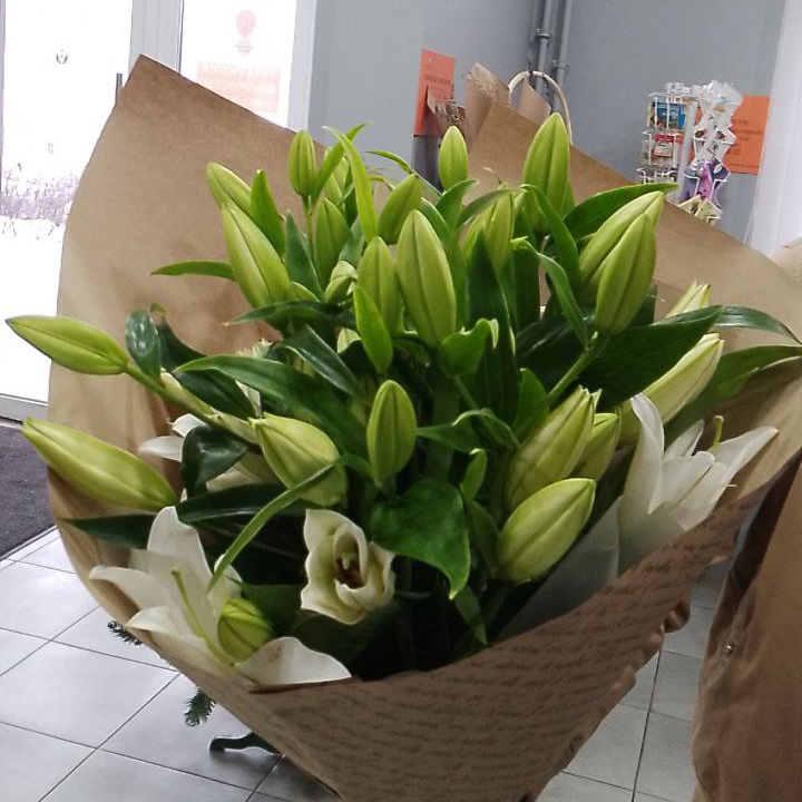 Букет из 9 бело-зелёных лилий