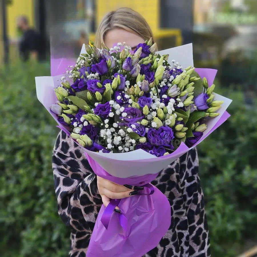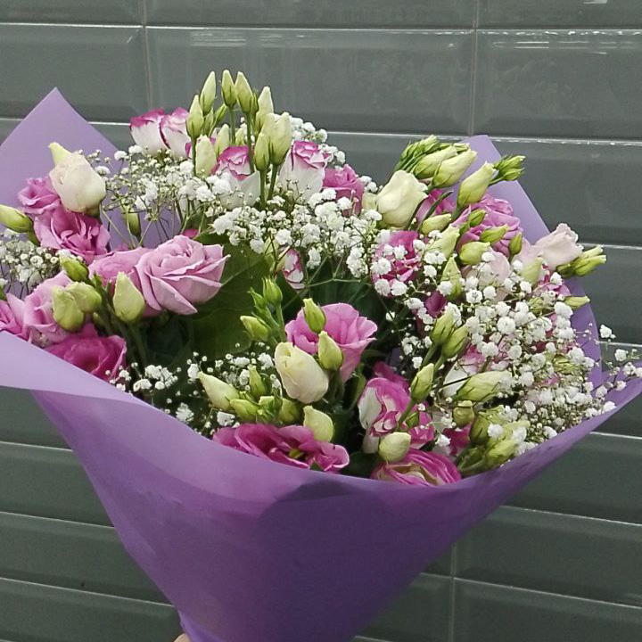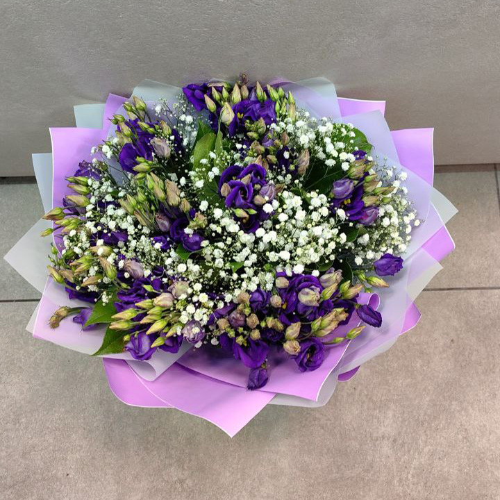 Букет из эустом, салал и гипсофила
