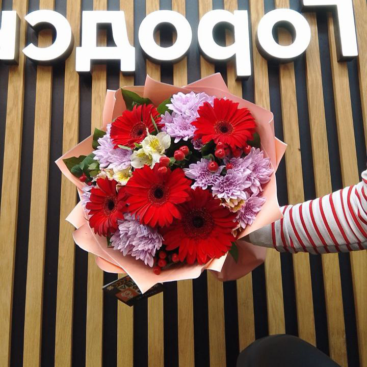 Букет из хризантем, альстромерии и гербер