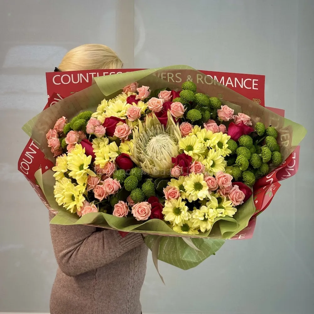 Наша компания заботится о ваших эмоциях и оставляет за собой право незначительно изменить состав и оттенок букета в пользу самого свежего цветка в нашем холодильнике