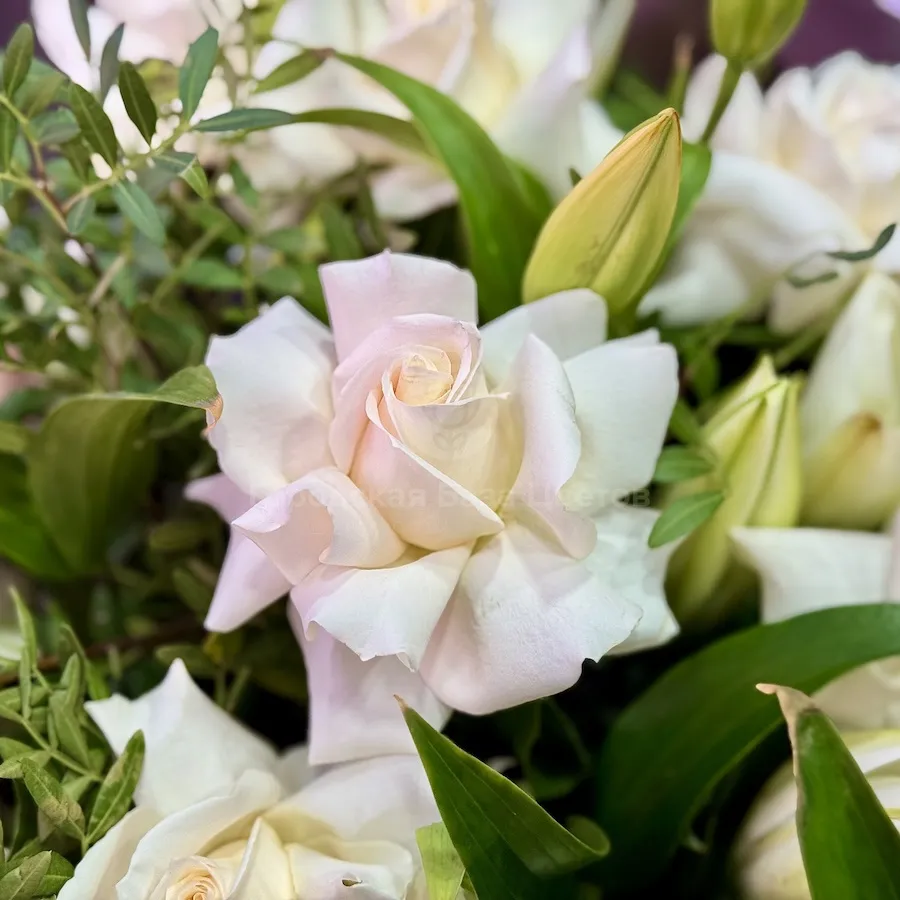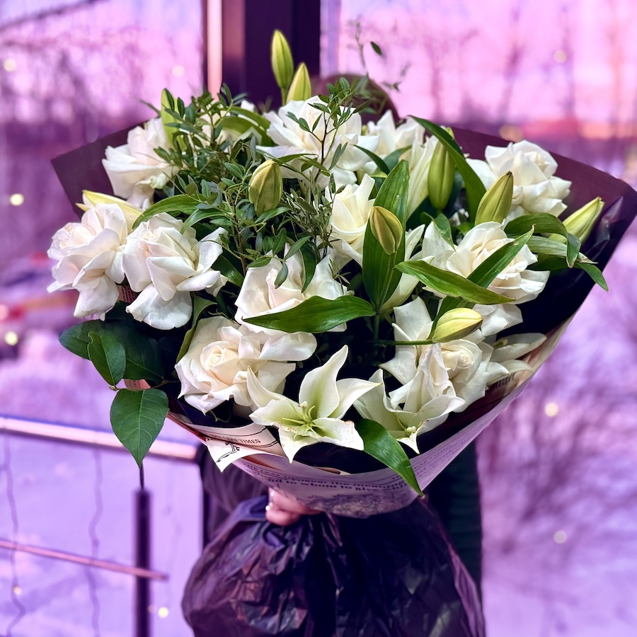 Букет из роз эквадор, альстромерий и лилий большой