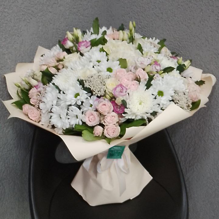 Большой букет из роз, эустом и хризантем