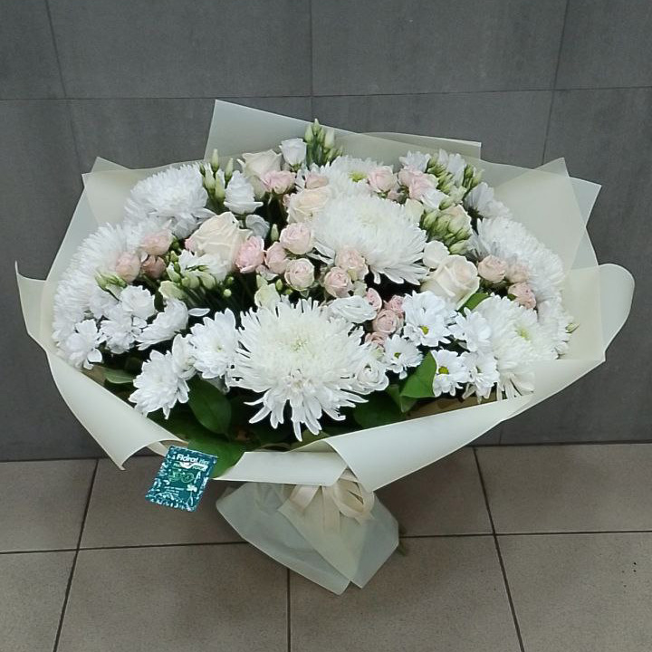 Букет из роз, эустом и хризантем
