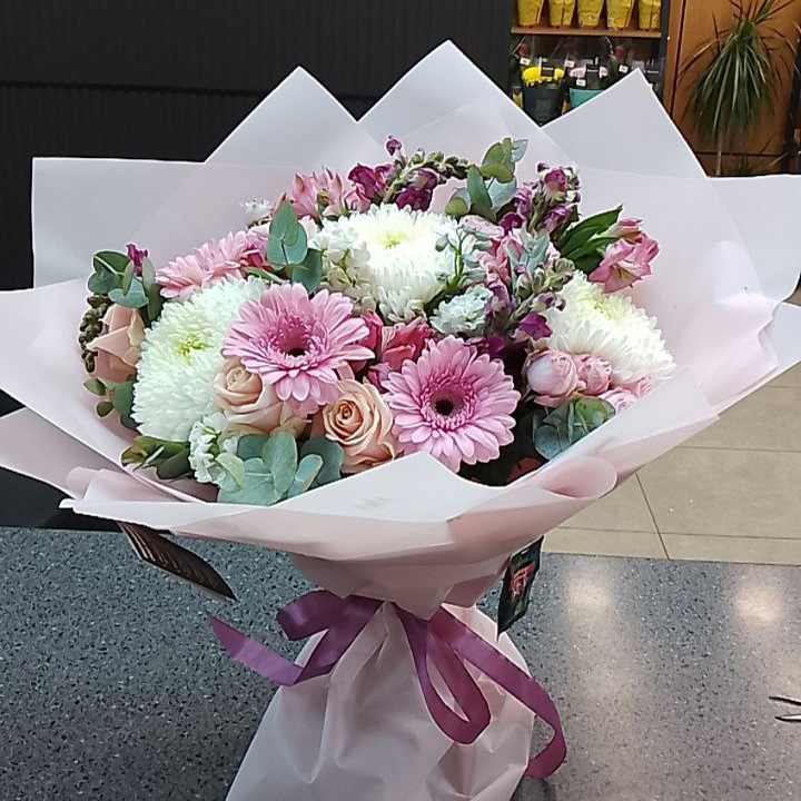 Букет из роз, хризантем и эустома