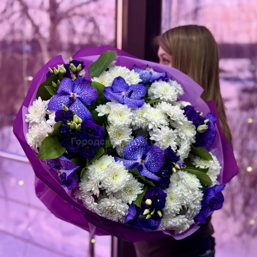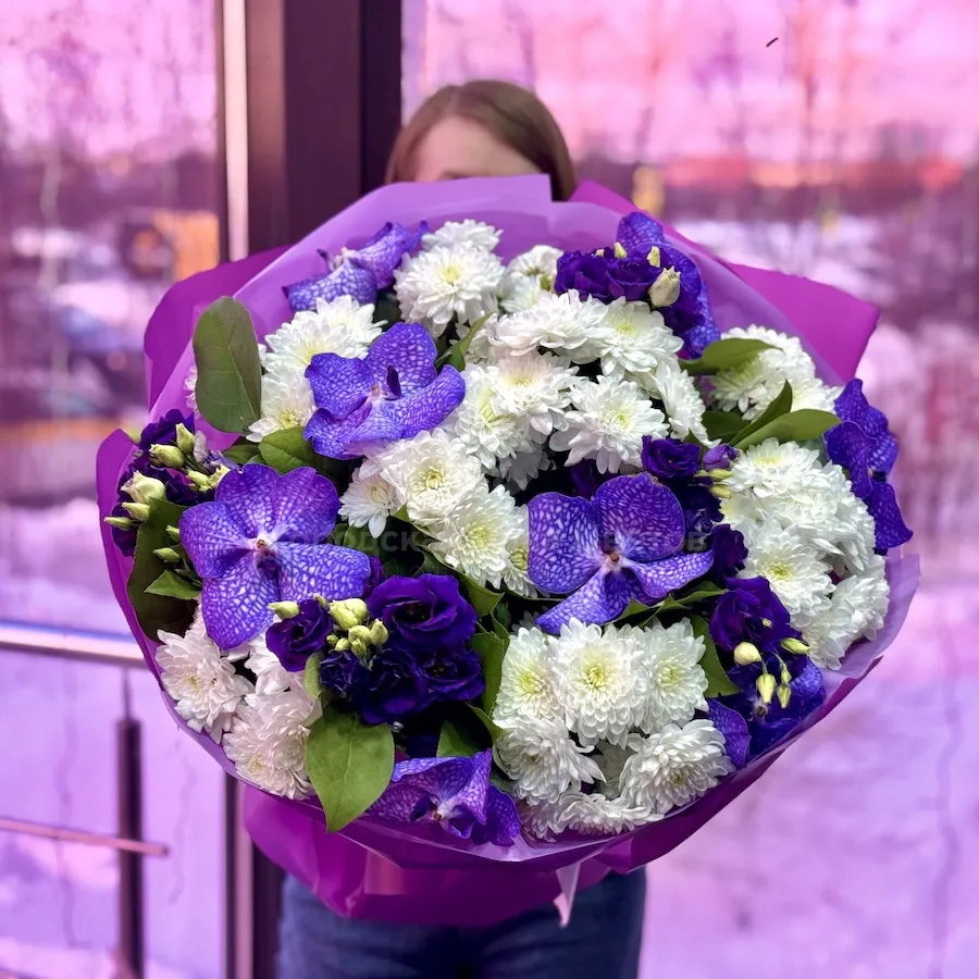 Букет орхидей ванда, эустом и хризантем большой
